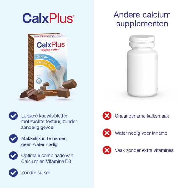 The normal dose is 1 to 2 chewable tablets per day. For optimal absorption of calcium, let CalxPlus® melt slowly in your mouth. The calcium reaches the stomach in small doses, which are well mixed with saliva, so that it is digested and absorbed easily.